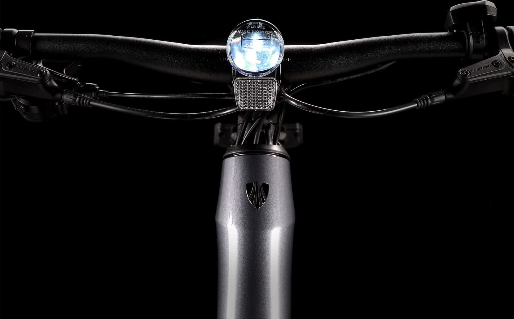 Nos vélos électriques de trekking et de ville sont équipés conformément au StVZO. Ils disposent d’un feu arrière bien visible et d’un feu avant lumineux, avec lesquels vous pouvez voyager sans soucis même sur des chemins non éclairés. Ils sont également fournis avec tous les réflecteurs nécessaires et bien sûr une cloche.