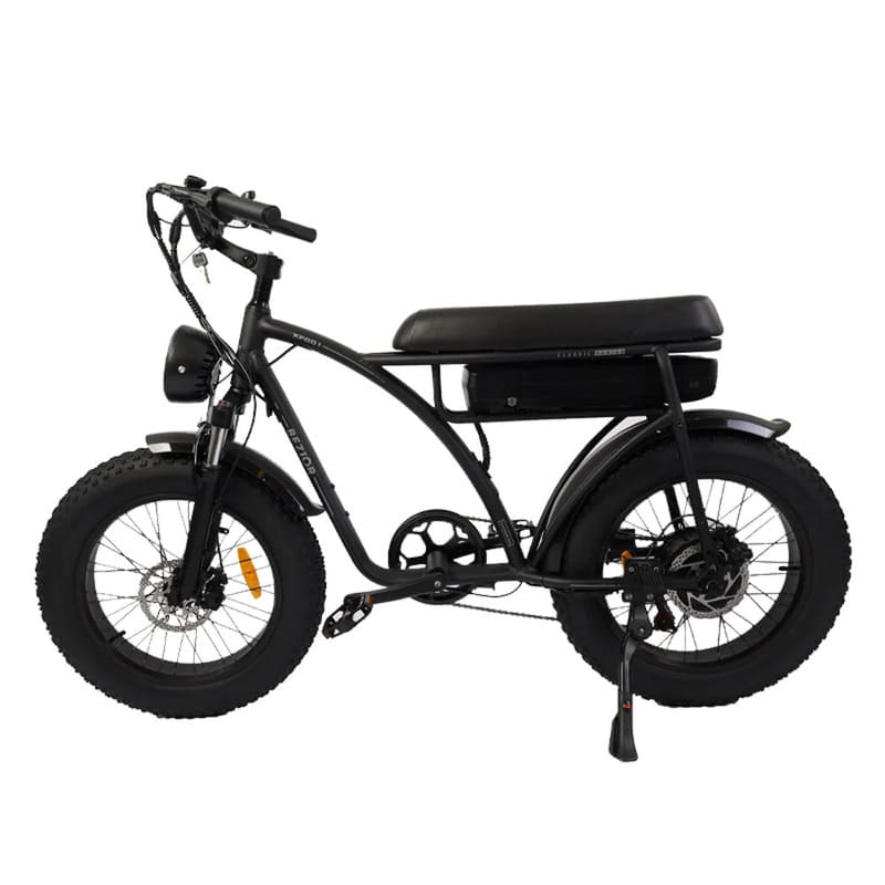 Batterie au lithium 48 V 12,5 Ah complètement cachée sous la selle, la batterie puissante avec une capacité étanche à l’eau et à la poussière prend en charge une gamme de kilométrage de 45 km en kilométrage assisté.